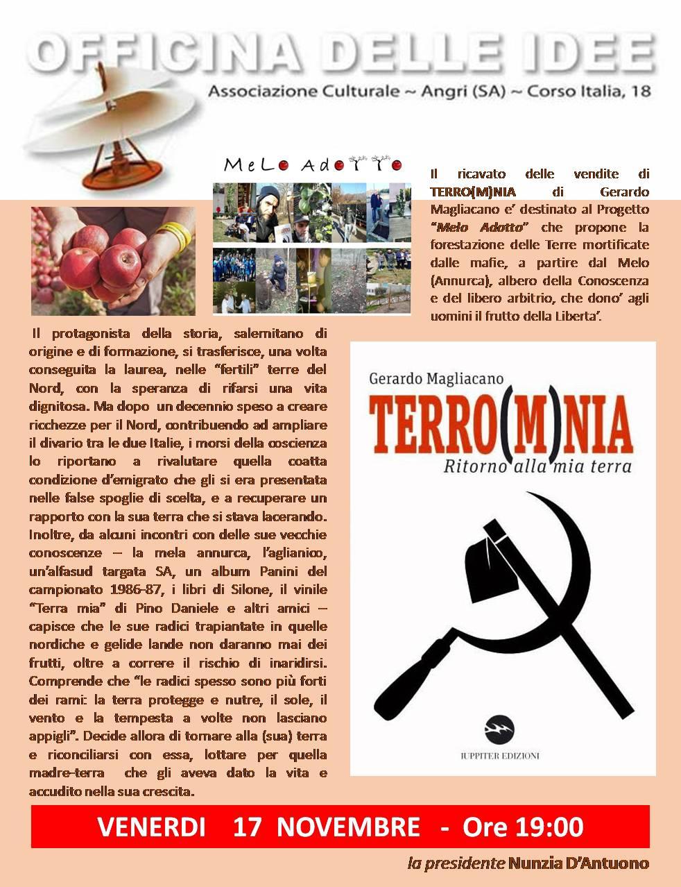 Venerdì 17 novembre, alle ore 19.00, presso l’Officina delle Idee di Angri (Sa), Gerardo Magliacano – scrittore salernitano – presenterà i progetti MeLo adotto e Ora Felix, legati ai suoi “romaggi” dedicati alla nostra terra.