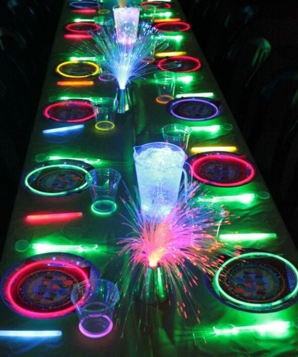 A molti sarà capitato di vedere ragazzi in discoteca agitare questi bastoncini fluorescenti mentre ballano. Puoi organizzare una festa con questo tema anche a casa o in un’altro luogo; è adatta a grandi e piccini. Unico requisito…il buio. Perché l’effetto luminoso sia visibile, infatti, i bastoncini fluo devono essere usati nella quasi totale oscurità. Per questo motivo vengono predilette location al chiuso e orari serali.