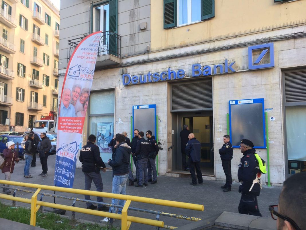 Colpo sventato della banda del buco ad un’agenzia bancaria in piazza Medaglie d’Oro, a Napoli. Scattato l’allarme i poliziotti sono giunti sul posto e, in un un cunicolo scavato sotto il pavimento della banca, hanno avuto di faccia due banditi che erano armati. I poliziotti hanno avuto una colluttazione con i banditi che avevano il volto coperto. Gli agenti sono riusciti a disarmarli e scoprire il capo ai due rapinatori. Ma i due banditi sono riusciti a dileguarsi. La vicenda ha avuto inizio quando dall’interno della banca sono stati avvertiti dei rumori sospetti. Sul posto sono arrivati i poliziotti che hanno avviato una prima verifica capendo che una parte del pavimento era stata indebolita; parte che e’ poi crollata. A questo punto gli agenti si sono trovati i rapinatori di faccia.con il volto coperto dal passamontagna e armato di una pistola con il colpo in canna. Ne e’ nata una colluttazione, l’agente e’ riuscito anche a strappare il passamontagna all’uomo ma i rapinatori hanno comunque guadagnato la fuga attraverso lo stretto passaggio nel buco della rete fognaria dal quale erano entrati. Entrambi i rapinatori, grazie agli angusti. spazi sono riusciti a scappare.I poliziotti hanno sequestrato l’arma, una pistola beretta 98 cal.9×21 con colpo in canna, i passamontagna e degli occhiali utilizzati dai malfattori. Dalla bonifica ed ispezione immediatamente effettuata dalla Polizia di Stato e dagli uomini del servizio fognature del Comune di Napoli sono stati rinvenuti e sequestrati numerosi borsoni e arnesi atti allo scasso. Inoltre dai controlli è emerso che alcuni dei tombini delle strade adiacenti l’istituto di credito erano stati bloccati dall’interno al fine di rendere più difficile l’accesso da parte delle forze dell’ordine. Immediate le indagini scattate da parte degli uomini del Commissariato di Polizia Vomero e della Squadra mobile partenopea che stanno setacciando tutta la zona alla ricerca dei duue fuggitivi. Posti di blocco sono stati allestitiin punti particolari da dove potrebbero uscire i due banditi,