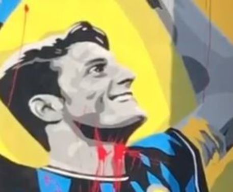 E’ stato imbrattato con della vernice rossa nella notte il grande murales realizzato in via Borsieri a Milano per i 110 anni dell’Inter.