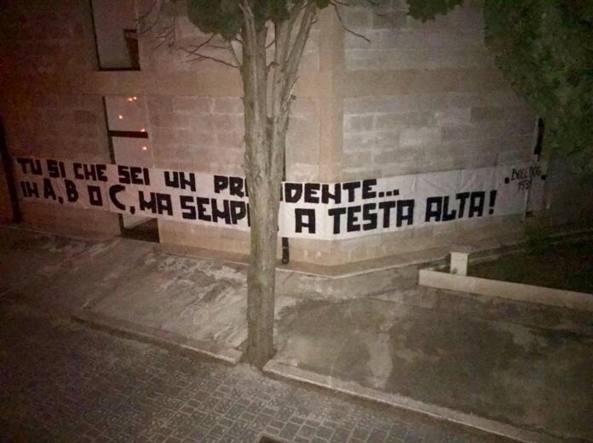 “Tu si’ che sei un presidente? In A, B o C ma sempre a testa alta”: i tifosi del Bari hanno esposto uno striscione nel cimitero di Bari davanti alla cappella della famiglia Matarrese per ricordare l’impegno per la squadra del presidente Vincenzo Matarrese, scomparso nel giugno 2016. Il vecchio patron e’ cosi’ ricordato con affetto consolatorio rispetto alle ultime tragiche vicissitudini del club, la cui iscrizione al prossimo campionato di serie B e’ in forte dubbio. Il telo, come confermato dalla famiglia Matarrese, e’ stato gia’ rimosso.