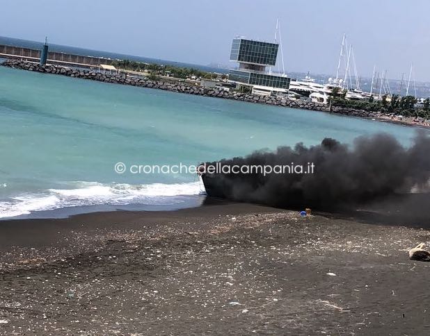 Castellammare di Stabia. Paura a largo di Marina di Stabia dove poco prima delle 13 un’imbarcazione ha preso fuoco. Nel giro di pochi minuti una nube nera ha invaso tutta l’area nord di Corso Alcide De Gasperi. Secondo una prima ricostruzione pare che la barca sia uscita proprio dal Porto Turistico. Ancora da chiarire le cause che hanno fatto divampare le fiamme. Sul posto sono giunti gli uomini della Capitaneria di Porto alla guida del Comandante Cassone e i militari della Guardia di Finanza la cui caserma dista pochi metri dal luogo in cui la barca ha preso fuoco. Pare che non ci siano conseguenze gravi a persone. Fortunatamente solo tanta paura.