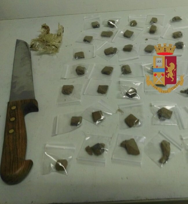 Torre del Greco.Ieri pomeriggio gli agenti della Polizia di Stato del Commissariato di Torre del Greco hanno arrestato Antonio Scognamiglio, 20enne napoletano, per il reato di detenzione ai fini dello spaccio di sostanza stupefacente. I poliziotti, nel corso di un’attività di contrasto e repressione del fenomeno delle sostanze stupefacenti, passando per via San Gennariello, hanno notato un giovane ,che, alla vista della polizia ha tentato di allontanarsi frettolosamente dalle palazzine popolari.Gli agenti lo hanno prontamente bloccato e a seguito di un controllo hanno rinvenuto, all’interno degli slip del 20enne, una busta contenente 36 bustine di hashish per un peso di 62,5 grammi.A seguito di un controllo effettuato nel garage del giovane, i poliziotti hanno rinvenuto un coltello da cucina con lama annerita da hashish e una busta trasparente contenente residui della stessa sostanza. Scognamiglio è stato arrestato in attesa del rito direttissimo