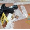 – una pistola semiautomatica Taurus Top , con matricola abrasa , stipata in un contenitore pieno di liquido infiammabile, che facilitava l’occultamento all’olfatto di eventuali cani;