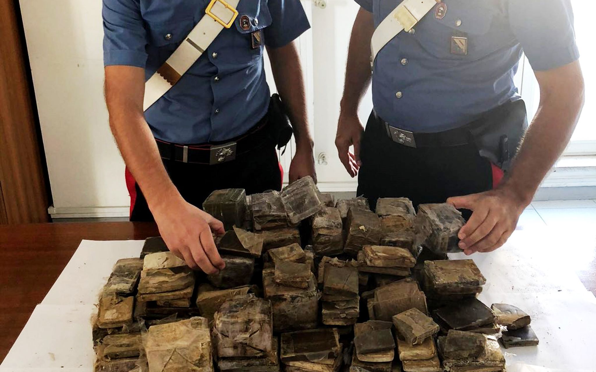 I militari dell’Arma l’hanno sorpreso in via San Pietro mentre con fare circospetto stava caricando a bordo di un furgone un borsone e diverse buste di cellophane dopo averle prelevate dal suo deposito sulla stessa strada. All’interno di una grossa busta sono stati rinvenuti 22,2 kg. di hashish in panetti di vario peso, 4,1 kg. di hashish erano all’interno di 3 buste nere, 2,3 kg. di hashish in un borsone di tela. Lo stupefacente, peso complessivo 28,6 kg., è stato sequestrato insieme al veicolo. L’arrestato è stato rinchiuso nella Casa Circondariale di Poggioreale.