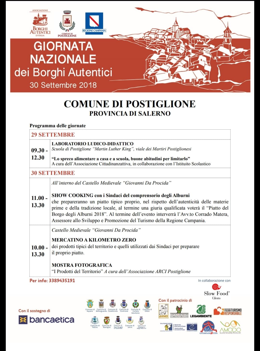 Il 2018 è l’Anno Nazionale del Cibo Italiano, proclamato da MiBact e Mipaaf per valorizzare il grandissimo patrimonio enogastronomico italiano e il suo legame profondo con la storia e le tradizioni dei nostri territori. Per tale occasione, l’Associazione Borghi Autentici d’Italia, di cui il Comune di Postiglione (SA) è associato, ha lanciato il progetto speciale “Comunità del cibo buono e autentico”, rivolto alle comunità e ai territori, con l’obiettivo di sviluppare il tema del cibo e del saper fare locale, quale risorsa e strumento per rinforzare una strategia integrata per lo sviluppo locale sostenibile.