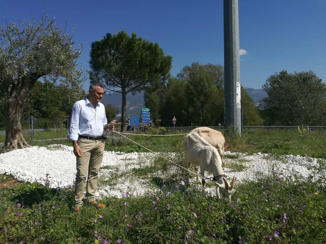 La rotatoria di ingresso al paese e’ invasa dalle erbacce ed alcuni cittadini protestano nei confronti del sindaco. Il primo cittadino, Giancarlo Guercio, risponde, tra ironia e provocazione, recandosi sulla rotatoria con due capre per far brucare l’erba. Accade a Buonabitacolo, piccolo centro a sud di Salerno. “Ho voluto rispondere – commenta il sindaco – in una maniera molto particolare. Prima di protestare, i miei concittadini dovrebbero informarsi bene. La pulizia della rotatoria e’ di competenza dell’Anas, e non comunale”. La scorsa primavera aveva sollevato commenti e polemiche l’iniziativa, promossa dal Campidoglio, di utilizzare le pecore come tosa-erba in 20 parchi di periferia di Roma.
