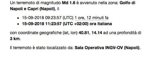 Per Francesca Bianco, direttrice dell’Osservatorio Vesuviano: “La scossa rientra tutto nella dinamica di allerta gialla della caldera dei Campi Flegrei. Non c’è assolutamente nulla di cui allarmarsi”. La scossa è stata avvertita  anche dagli abitanti soprattutto nella zona di via Napoli e sul lungomare di Pozzuoli fino a Bagnoli. Il tam tam della notizia ha fatto naturalmente in breve tempo il giro sui social. La gente ha comunicato di aver sentito prima un boato e, poi, un tremore. Non si segnalano danni a persone o cose.