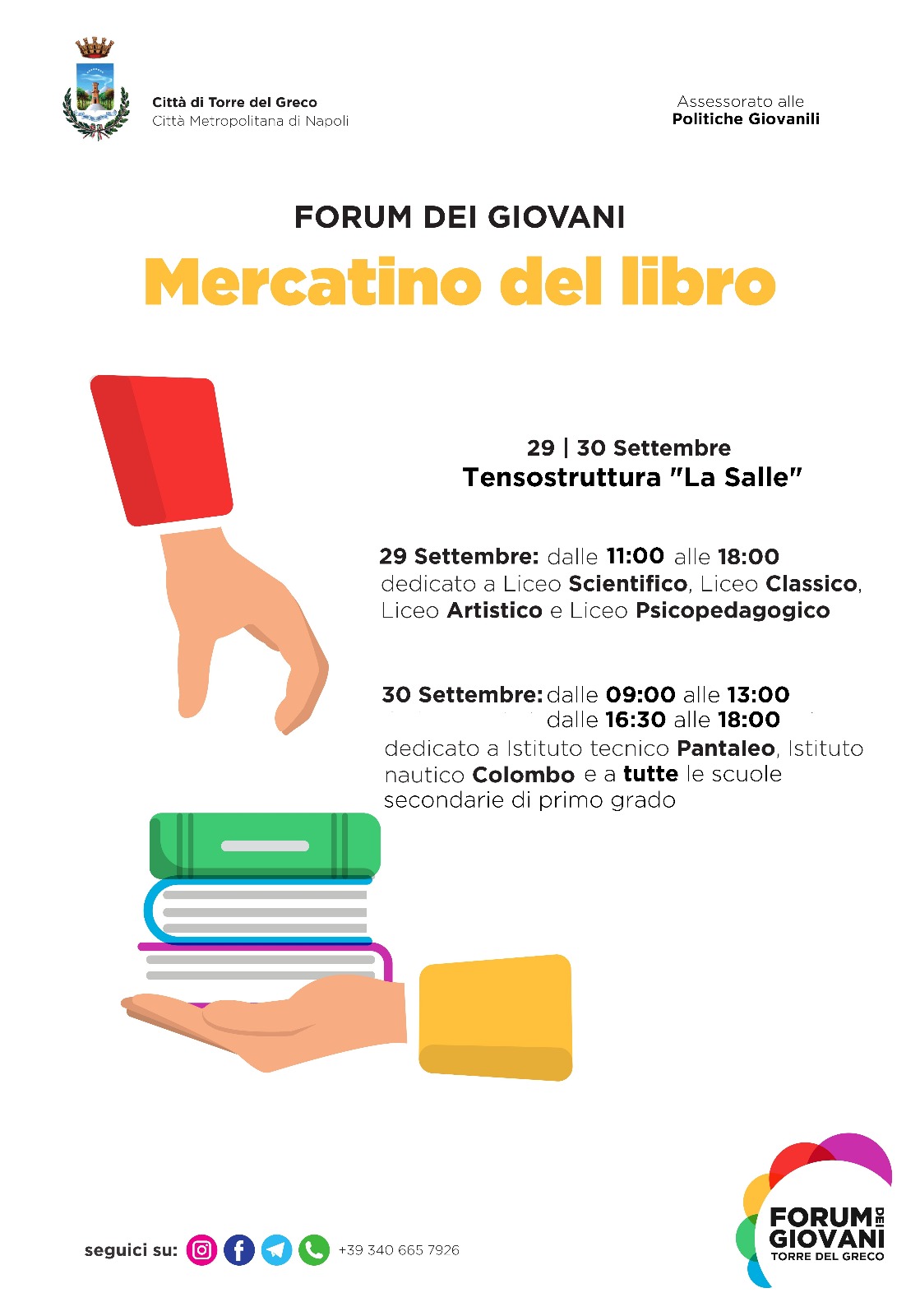 Il forum dei giovani organizza per il 29 e il 30 settembre, presso la tensostruttura la Salle “il mercatino del libro usato”.