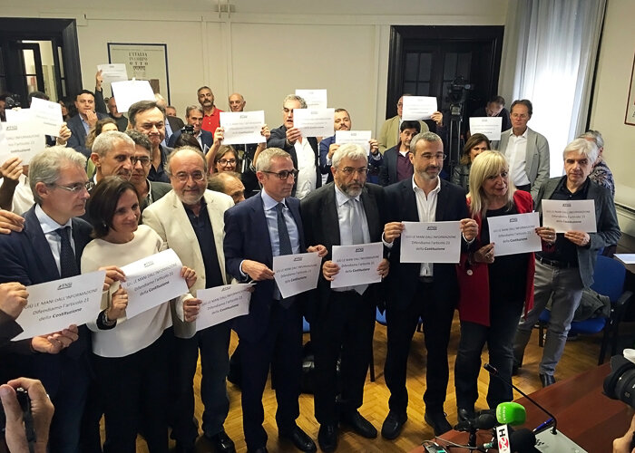 «Ritrovarsi in piazza contemporaneamente – spiega Raffaele Lorusso, segretario generale della Fnsi – significa respingere tutti insieme attacchi volgari e inaccettabili contro l’informazione e i giornalisti. Ormai non si tratta più di episodi isolati, ma di azioni mirate a screditare una categoria di professionisti con lo scopo di disorientare l’opinione pubblica. Una forza politica, il Movimento 5 Stelle, che teorizza il superamento del Parlamento e della democrazia liberale ha messo nel mirino i giornalisti e gli editori perché per realizzare questo progetto bisogna togliere di mezzo tutti gli organismi intermedi e impedire ai cittadini di conoscere. Soltanto un’informazione debole, docile o assente può consentire alla disinformazione di massa, veicolata attraverso gli algoritmi e le piattaforme digitali, di prendere il sopravvento e di manipolare il consenso e le coscienze dei cittadini. È un disegno al quale bisogna opporsi con forza».