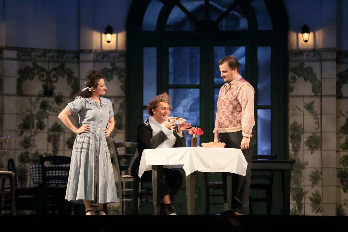 Dal 17 al 20 novembre, il San Carlo si sposta al Teatro Politeama per l’opera buffa “Don Checco” di Nicola De Giosa. L’allestimento del Teatro di San Carlo – in coproduzione con Festival della Valle d’Itria – vede la regia di Lorenzo Amato con le luci di Vincenzo Raponi. Sul podio Carmine Pinto, per dirigere l’Orchestra e il Coro del Lirico partenopeo. Le scene di Nicola Rubertelli e i costumi di Giusi Giustino trasportano la vicenda nell’Italia degli anni Quaranta del Novecento, in una Napoli la cui atmosfera è ispirata alle commedie e alle trasposizioni cinematografiche di Scarpetta e De Filippo. L’opera di De Giosa è ormai riconosciuta dagli studiosi e dai musicologi internazionali come uno tra i lavori più significativi della letteratura musicale di matrice napoletana. Dopo il fortunato esordio che contò circa novantasei repliche dal prima rappresentazione, avvenuta nel 1850, “Don Checco” cadde inspiegabilmente nell’oblio, per poi essere ripresa soltanto in tempi recenti: è stato il Teatro di San Carlo a riproporla sulle scene, al Teatrino di corte di Palazzo Reale, nella Stagione d’Opera del 2014 (dopo una prima rappresentazione in forma di concerto a Bari, nel 2013). Afferma il regista: “Devo ammettere che, inizialmente, ero abbastanza perplesso sulla partitura, che mi appariva un po’ di maniera, e su una drammaturgia tutto sommato fragile: una trama molto semplice, personaggi già visti e conosciuti in molte altre occasioni. Solo mettendola in scena mi sono reso conto delle enormi potenzialità di quest’opera dimenticata, forse proprio perché la teatralità, il bisogno di essere agita su palcoscenico sono tra i tratti più validi e stimolanti di questa partitura”. Continua: “Mi sono accorto di come la fragilità della trama e quelli che inizialmente mi sembravano manierismi musicali fossero in realtà a servizio di un qualcosa di ben più interessante: in un momento storico in cui l’opera buffa, che tanto aveva dominato la scena fino ad allora, sembrava essere destinata al declino, Nicola De Giosa compone un’opera a compendio di tutte le altre opere buffe, con un’ironia e una dose di cattiveria, che oso definire geniali. È come se Don Checco fosse l’opera buffa che si fa gioco del genere dell’opera buffa e quindi di se stessa”. La vicenda riprende schemi e convenzioni tipici del genere comico, sviluppandosi attraverso un gioco di equivoci e malintesi: ne è travolto Don Checco (Domenico Colaianni), scaltro spiantato, con l’esattore Succhiello Scorticone (Giuseppe Esposito) alle calcagna. Verrà creduto il Conte de’ Ridolfi, signore della zona, che compare sulla scena nelle vesti del pittore Roberto (Rocco Cavalluzzi), in incognito per tener d’occhio i suoi sudditi. Lottano per il loro amore i due giovani, Florina (Barbara Bargnesi) e Carletto (Giovanni Sala), contro il burbero Bartolaccio (Carmine Monaco), padre della ragazza.