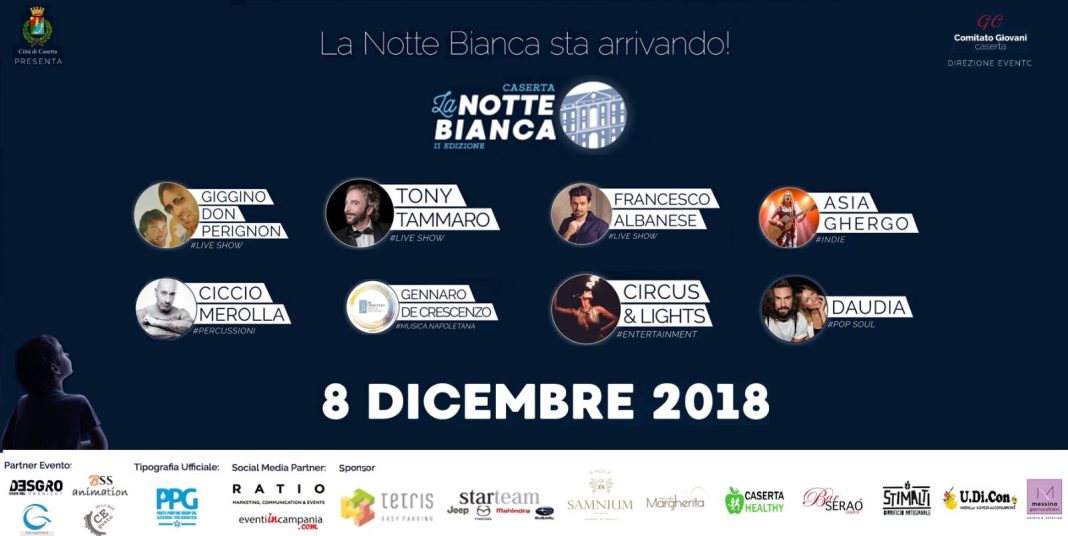 Dopo undici lunghi anni, l’evento tornerà in città sabato 8 dicembre dalle ore 19:00 alle 03:00 e avrà luogo presso le piazze principali di Caserta: Piazza Vanvitelli, Piazza Duomo, Piazza Margherita, Piazza Correra, Corso Triste, Piazza Marconi e Piazza Ruggero.