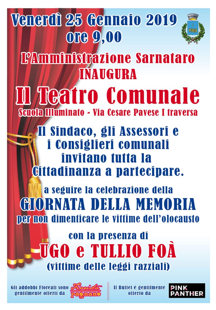 Mignano. L’Amministrazione Sarnataro inaugura il primo teatro comunale della città. La cerimonia del taglio del nastro si terrà venerdì 25 gennaio alle ore 9 in via Cesare Pavese I traversa. La sala polifunzionale potrà essere utilizzata per spettacoli teatrali, proiezioni cinematografiche, concerti, convegni e esposizioni artistiche. “La struttura – spiega l’assessore ai Lavori Pubblici Antonio Amatore – ha circa 400 posti a sedere. Oltre al palcoscenico, con annessi camerini, è dotata anche di una sala regia per la proiezione di film. Inoltre abbiamo voluto realizzare un doppio ingresso, uno diretto dalla scuola Illuminato ed un altro indipendente su via Cesare Pavese proprio per rendere il teatro accessibile a tutti i cittadini anche in orario extra scolastico”. All’evento parteciperanno rappresentanti delle istituzioni locali e regionali. “Finalmente siamo pronti a restituire alla città un’opera che per troppi anni è rimasta incompiuta – commenta il presidente della Commissione consiliare ai Lavori Pubblici Pasquale Liccardo – Questo risultato è il frutto di un lavoro di squadra che per noi non rappresenta un traguardo ma solo un tassello di un puzzle che ha come scopo il miglioramento della qualità della vita nel nostro territorio. Ringrazio l’assessore Amatore, il gruppo di Progetto Democratico e l’intera maggioranza per il lavoro svolto”. Entusiasta il sindaco Luigi Sarnataro: “Raggiungiamo, ancora una volta, un risultato storico per Mugnano che finalmente avrà un teatro comunale con tutti i crismi e degno di questo nome. Ringrazio innanzitutto le forze politiche che mi sostengono per aver creduto fortemente in quest’opera, gli assessori al ramo Amatore e Puzone che in questi anni hanno seguito i lavori e le amministrazioni precedenti che hanno lavorato al progetto. Dopo il liceo di via Crispi e le tre ville comunali, venerdì inauguriamo un’altra opera pubblica prevista dal nostro programma, mantenendo gli impegni presi con i cittadini”. Dopo il taglio del nastro la mattinata continuerà con la celebrazione per il Giorno della Memoria, insieme agli alunni e ai docenti della scuola Illuminato. All’iniziativa interverranno i fratelli Ugo e Tullio Foà, vittime delle leggi razziali e della persecuzione italiana dei cittadini ebrei.