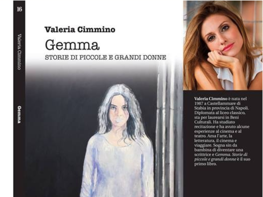 La stabiese Valeria Cimmino presenterà il prossimo martedì 19 febbraio il suo libro “Gemma – Storie di piccole e grandi donne” edito da Iuppiter Edizioni. La presentazione avverrà alle ore 18:00, Al Blu di Prussia (via Gaetano Filangieri, 42 – Napoli) con Giuseppe Mannajuolo che ospiterà la scrittrice emergente. Il libro ha ottenuto il Premio Nuove Opere, con il sostegno del Ministero per i Beni e le Attività Culturali e di SIAE, nell’ambito dell’iniziativa “Sillumina – Copia privata per i giovani, per la cultura”.