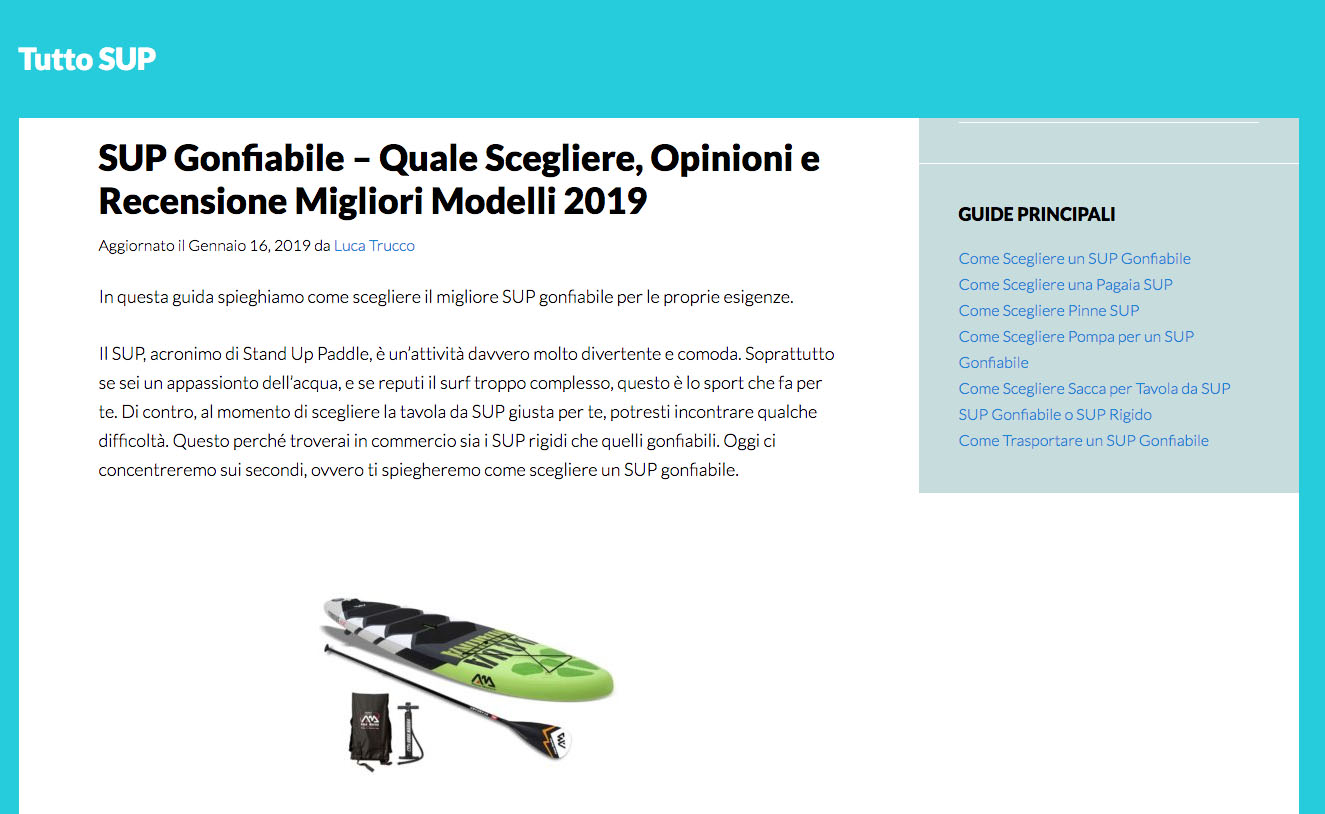 Oggi sul mercato esistono tanti modelli utili a sodisfare esigenze di ogni genere: pensiamo al Sup gonfiabile, comodo per una gita al mare partendo magari dalla città; ovviamente la tavola da sgonfia occupa poco spazio ed è quindi trasportabile in modo molto più comodo.