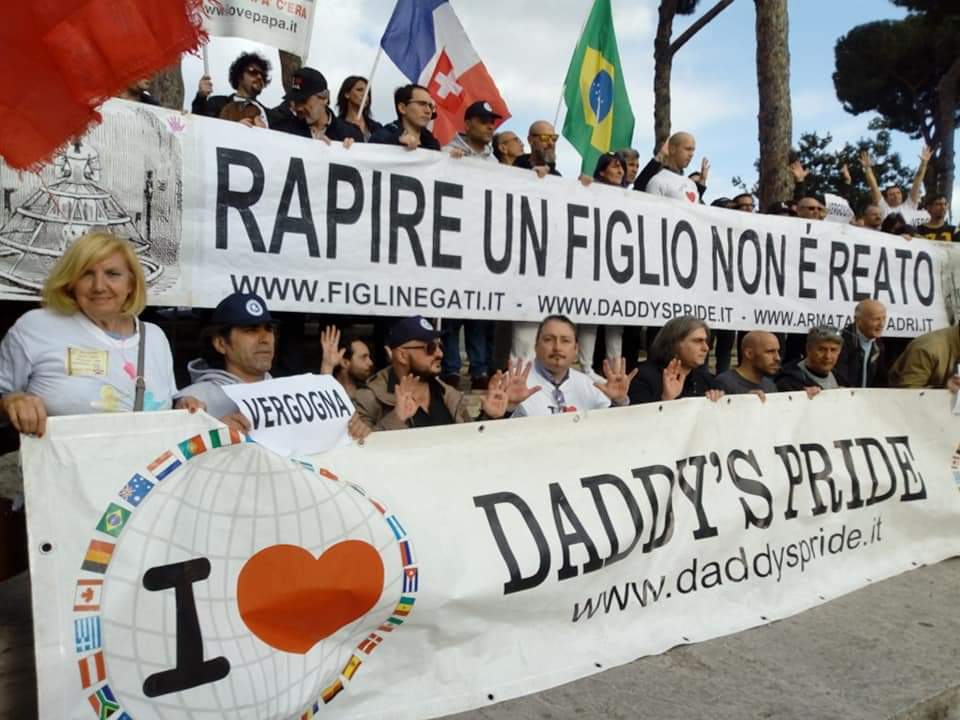 Festa del papà manifestazione a Roma. Anche quest’anno si è svolta a Roma nel pomeriggio di domenica scorsa, nella spettacolare cornice antistante l’Altare della Patria in piazza Venezia la XXI edizione del Daddy’s Pride raduno di orgoglio per i papà separati. Appuntamento organizzato da oltre 20 anni dal Dott. Giorgio Ceccarelli storico Leader dei papà separati, presidente dell’associazione Figli Negati. Presenti oltre a Ceccarelli tutti i big storici dell’attivismo a sostegno dei genitori separati: Domenico Fumagalli voce dei papà separati in oltre 20 anni di lotta, presidente di Papà Separati Lombardia Onlus, Vincenzo Spavone pietra miliare e storico Leader della Gesef, i rappresentanti del movimento Open Space e poi ancora Amedeo Palazzo, Mimmo Zardo, Massimiliano Gobbi, Gianfermo Schiavi e tanti altri eccellenti nomi. Alla manifestazione hanno aderito genitori separati da tutta Italia con anche al seguito compagne, sorelle e nonni che non vedono più il loro nipoti. La partecipazione quest’anno è stata eccezionale, le presenze superavano il centinaio di partecipanti. Non ci sono stati, come sempre, disordini : è stata una giornata di pacifica protesta e unione per chiedere il diritto sacrosanto di poter essere genitori presenti nella vita dei propri figli.