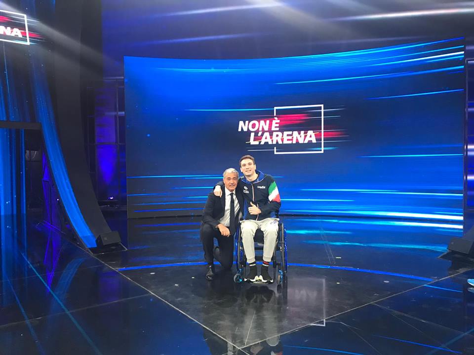 Abbracci e lacrime nello studio televisivo di ‘Non è l’Arena’, il programma condotto da Massimo Giletti su La7 tra Manuel Bortuzzo e Arturo Puoti, il diciottenne aggredito con 15 coltellate da una baby gang a Napoli lo scorso anno. “Ho guardato avanti e ho cercato tutte le cose più belle che potevano esserci e che mi aspettano e sono molto di più di quelle brutte che ho passato. Sicuramente l’essere atleta mi ha aiutato a guardare avanti, a reagire così. Adesso combatto contro me stesso, contro il tempo, come ho fatto sempre in acqua”. Così Manuel Bortuzzo ha raccontato come ha saputo reagire all’aggressione, avvenuta a Roma, che lo ha lasciato paralizzato agli arti inferiori, nel corso dell’intervista nel programma tv condotto da Massimo Giletti. Secca la risposta alla domanda su cosa direbbe a chi ha premuto il grilletto quella sera: “Che gli devo dire? Bravi. Io sono ancora qua”. Ospite per la prima volta in uno studio televisivo, il giovane triestino ha raccontato l’emozione che ha provato nel tornare in vasca .”E’ stato sicuramente diverso. Mi sono seduto sul muretto ho messo le gambe in acqua e niente. Non ho sentito niente”. Ma “una volta immerso ho provato una sensazione bellissima a cui prima non davo peso: perché adesso muovere tutto, sentire tutto, riuscire a stare a galla è un’emozione grande. Il nuoto è tanto, l’acqua è tutto. Dopo che ho iniziato a dare le prime bracciate mi sembrava che non fosse successo niente. Mi sembrava tutto normale”. Poi Manuel ha ricordato il momento della sparatoria: ” Ho visto il viso di chi ha sparato, ho visto l’arma e in quell’istante ho pensato come e’ possibile? E’ vero? Non è vero? Avevo mille pensieri per la testa ma quando ho visto lei (Martina, la fidanzata ndr) ho pensato solo a una cosa: non so se riuscirò a vederla più però lei deve sapere che io la amo”. In studio anche il padre Franco che ha commentato la straordinaria forza del figlio nell’affrontare questo durissimo momento: : “mi sta dando la carica lui per andare avanti. Ha un’energia dentro che è superiore a qualsiasi altra persona, un istinto suo, che veramente ti lascia basito.” “Il nostro primo atleta in questo momento è Manuel Bortuzzo”, ha detto invece il Presidente della Federazione Nuoto Paolo Barelli.