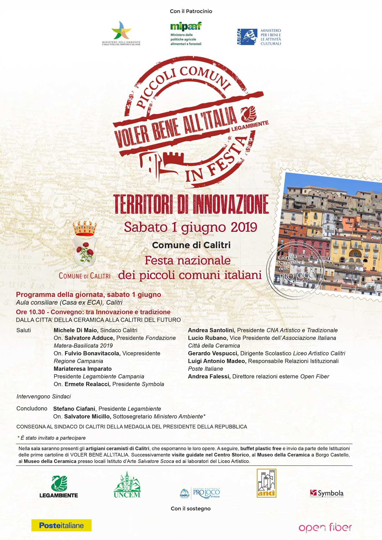 Domani sabato 1 giugno anteprima nazionale a Calitri, in Irpinia, dove si terrà l’incontro “Tra tradizione e innovazione: dalla città della ceramica alla Calitri del futuro” a cui parteciperanno i sindaci della zona insieme al sindaco di Calitri Michele Di Maio, il presidente di Legambiente Stefano Ciafani, il presidente Legambiente Campania, Mariateresa Imparato, il presidente della Fondazione Symbola Ermete Realacci, il vicepresidente della Regione Campania Fulvio Bonavitacola e tanti altri invitati.