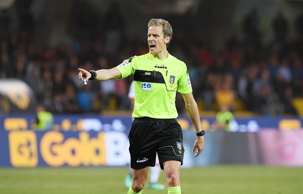 Queste le designazioni arbitrali in vista della 16ma giornata di ritorno di Serie A, in programma domenica 5 maggio: Chievo-Spal (sabato h. 18): Ros di Pordenone (Caliari-Di Iorio; iv: Illuzzi, var: Abisso, avar: Tasso) Empoli-Fiorentina (domenica h. 12.30): Irrati di Pistoia (Liberti-Gori; iv: Sacchi var: Banti avar: Vuoto) Genoa-Roma (domenica h. 18): Mazzoleni di Bergamo (Paganessi-Vivenzi; iv: Pairetto var: Guida avar: Valeriani) Juventus-Torino (venerdi’ h. 20.30): Orsato di Schio (Tegoni-Lo Cicero; iv: Maresca var: Giacomelli avar: Tolfo) Lazio-Atalanta: Calvarese di Teramo (Carbone-Peretti;iv: Manganiello var: Massa avar: Di Liberatore) Milan-Nologna (lunedi’ h. 20.30): Di Bello di Brindisi (Ranghetti-Schenone; iv: Pasqua var: Valeri avar: Bindoni Napoli-Cagliari (h. 20.30): Chiffi di Padova (Santoro-Dei Giudici; iv: Pillitteri var: Mariani avar: Cecconi) Parma-Sampdoria: Fabbri di Ravenna (Passeri-Margani; iv: Rapuano var: Aureliano avar: Galetto) Sassuolo-Frosinone: Giua di Pisa (Manganelli-Bercigli; iv: Baroni var: Serra avar: Fiorito) Udinese-Inter (sabato 4 h. 20.30): Rocchi di Firenze (Meli-Del Giovane; iv: La Penna var: Doveri avar: Di Vuolo)