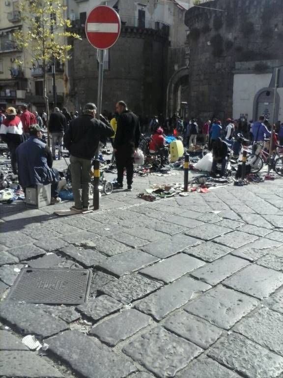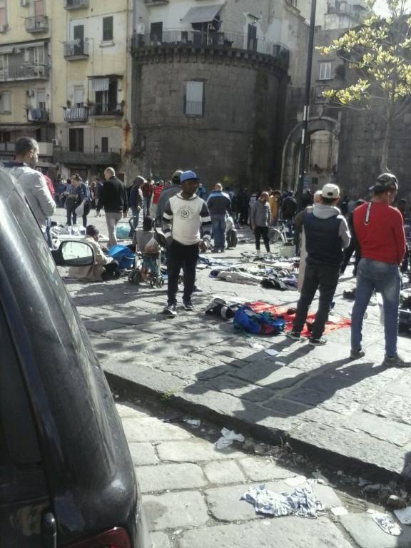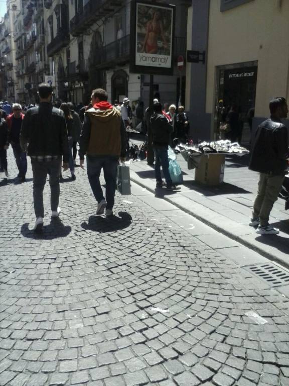 Napoli. Anche in questa terza domenica di maggio nonostante gli annunciati controlli il centro di Napoli è stato preda di venditori ambulanti in tutte le salse. In via Toledo, la strada dello shopping, si registra la solita scena con la “fuga” dei venditori ambulanti appena transitano i vigili. In in meno di un minuto riescono a “chiudere” la bancarella e ad allontanarsi salvo poi ritornare al loro posto quando i caschi bianchi si allontanano. I commercianti hanno chiesto più volte ai vigili di usare le maniere forti ed evitare che si registrano sempre le stese scene. Chiedono in pratica un controllo serrato in tre punti nevralgici di via Toledo per scongiurare le fughe, Ma soprattutto chiedono che si eviti l’ingresso nella strada da parte dei migranti. Altro punto dolente delle domeniche napoletane è la presenza sempre di numerosi venditori ambulanti stranieri nel cosiddetto “mercatino della monnezza” tra porta Nolana e corso Garibaldi. Anche in questa zona della città sono numerose le bancarelle e i punti vendita gestiti da migranti. Ma qui si vendono prodotti riciclati e molto spesso presi dalla spazzatura. E anche in questa zona nessuno controlla.