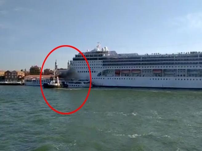 Nell’impatto alcune persone sarebbero finite in acqua. I feriti sarebbero 5 , tutti non gravi di cui uno a bordo della nave della MSC. La grande nave all’impatto ha suonato per dieci minuti la sirena.