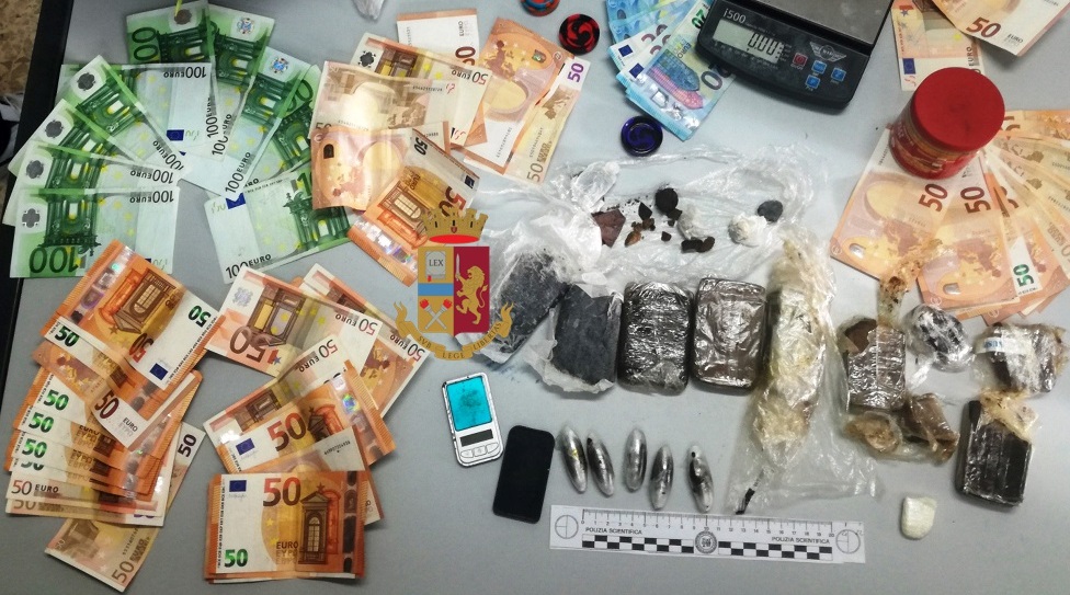 Gli agenti hanno eseguito un controllo presso l’abitazione del giovane in Via Mazzini nel comune vesuviano dove, all’interno di una custodia per chitarra, hanno rinvenuto e sequestrato hashish suddiviso in panetti ed ovuli per un peso di 750 grammi, 2600 euro e un bilancino di precisione. Il giovane era in procinto di prendere un volo diretto ad Ibiza e aveva inoltre, occultati negli abiti che indossava, ovuli di hashish e mille euro in contanti.