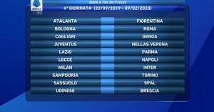 | Atalanta-Verona Bologna-Milan Inter-Roma Lazio-Juventus Lecce-Genoa Sampdoria-Parma Sassuolo-Cagliari SPAL-Brescia Torino-Fiorentina Udinese-Napoli |