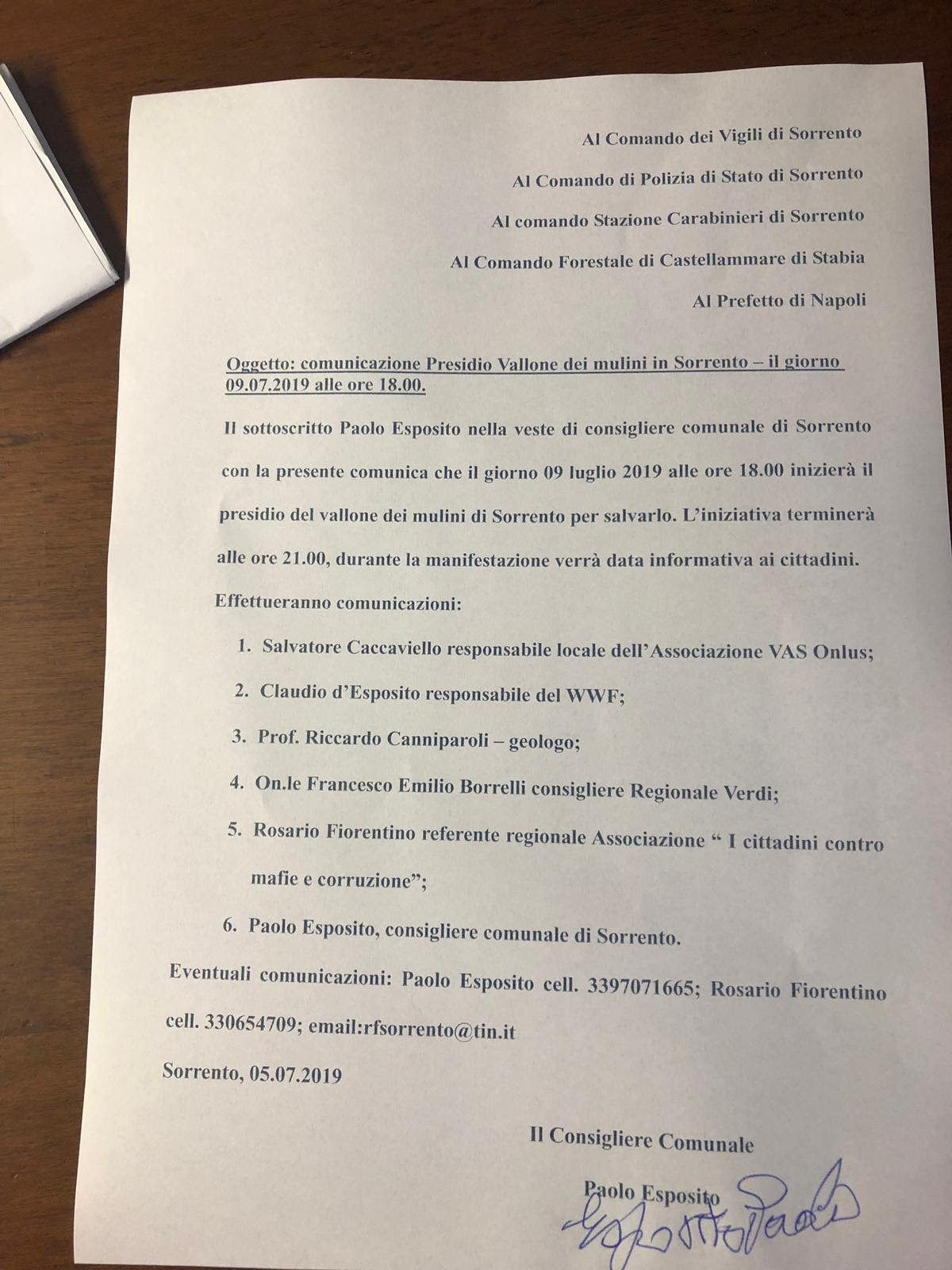 “Martedì 9 luglio alle ore 18,00 saremo presenti al Vallone dei Mulini di Sorrento per prendere parte al presidio organizzato dal consigliere comunale Paolo Esposito in difesa dei uno dei luoghi più suggestivi dell’intera penisola. Il presidio nasce per chiedere chiarezza circa gli interventi che si stanno effettuando all’interno del vallone. Stiamo parlando di un vero e proprio tesoro paesaggistico ed è necessaria la massima trasparenza”. Lo afferma il consigliere regionale dei Verdi Francesco Emilio Borrelli. Al presidio prenderanno parte anche altri esponenti della cultura e dell’associazionismo come il responsabile locale dell’associazione Vas Onlus Salvatore Caccaviello, il responsabile del Wwf Claudio d’Esposito, il geologo prof. Riccardo Canniparoli e Rosario Sorrentino, referente regionale dell’Associazione contro Mafia e Corruzione. “Il nostro presidio – spiega Paolo Esposito – non è assolutamente contro i proprietari del Vallone. Tutto quello che chiediamo è la chiarezza. Presso il comune non risulta altro che una Scia. All’interno del vallone però sono già iniziati i lavori con un’ampia area di cantiere. Occorre sapere di che interventi si tratta e di come impatteranno sull’intero vallone. Chiediamo che siano resi noti tutti i documenti e le autorizzazioni”.
