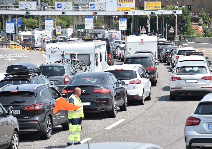 Esodo da ‘bollino rosso’ con traffico sostenuto e rallentamenti, come da previsioni, nella prima domenica di agosto che ha visto, per la prima volta nel mese clou delle vacanze, scendere in sciopero i casellanti con conseguenti code ai varchi autostradali che per lo più sono stati aperti in maniera ridotta consentendo i transiti solo ai telepass e alle casse automatiche. Salvo alzare tutte le sbarre nei casi di emergenza, per far defluire gli incolonnamenti e scongiurare ulteriori rischi, come avvenuto sull’Autostrada dei Fiori, dopo un grave incidente in galleria all’altezza di Chiavari nel quale sono stati travolti da un tir due poliziotti e un operatore dei soccorsi mentre aiutavano un auto in panne. E’ caduto nel vuoto l’appello dei sindacati di tenere aperte tutte le casse, anche quelle sguarnite di personale per non penalizzare gli automobilisti in marcia sotto il sole che dopo il meteo bizzarro dei giorni scorsi ha regnato dappertutto. L’agitazione a singhiozzo e’ partita dalle dieci alle quattordici di stamani, domenica 4 agosto, per poi proseguire dalle diciotto fino alle due di notte di domani, lunedì 5 agosto. La circolazione, da nord a sud, e da ovest a est, pur non facendo registrare le punte di ieri, e’ stata comunque consistente e si e’ normalizzata nel pomeriggio man mano che chi si e’ messo in viaggio raggiungeva la sua meta, il più delle volte una località marina. Disavventura nei trasporti marittimi per il dietrofront del traghetto Ariadne della Tirrenia sulla tratta Cagliari-Palermo. Un gruppo di 25 ragazzini stranieri in ritardo con un accompagnatore e’ rimasto a terra. Dopo riunioni concitate, tra le proteste dei viaggiatori, la nave gia’ al largo da almeno un paio d’ore e’ tornata a prenderli. Motivi di tutela dei minori hanno prevalso su tutto. “Il viaggio e’ stato un incubo, siamo arrivati quattro ore dopo l’orario previsto: la compagnia ci ha solo detto dopo ben tre ore di navigazione che si rientrava per prendere dei ritardatari, senza nemmeno dirci che erano dei ragazzi”, spiega un padre in viaggio per la Sicilia con il suo bambino. “Si e’ rischiata la sommossa: potevano metterli su un aereo senza stravolgere i programmi di centinaia di persone”, aggiunge dopo essere finalmente sbarcato. Una persona dializzata ha preferito scendere ed e’ stata riprotetta su un volo per la Sicilia. Il traghetto e’ arrivato a Palermo poco dopo mezzogiorno, era atteso per le otto. Tragico incidente a Ischia: una donna ha investito e ucciso un ragazzo, sette anni fa aveva gia’ travolto mortalmente un carabiniere. Per quanto riguarda il traffico autostradale, sulla A1 ci sono stati due km di coda tra Reggio Emilia e il bivio con l’ Autobrennero a causa di un incidente; sulla A4 coda di 2 km alla barriera di Milano est; sulla A9 code tra Como e Chiasso in direzione nord; sulla A12 traffico bloccato al km 45 per l’incidente tra Sestri Levante e Lavagna in direzione nord nella galleria Sant’Anna; sulla A2 traffico intenso nell’area di Salerno; sulla A14 adriatica code a tratti tra Bologna e il bivio per i lidi del ravennate; sulla A27 un km di coda tra Belluno e l’uscita con la Ss51 Alemagna; sulla A30 code in uscita alla barriera di Salerno. Segnalati anche 30 minuti di attesa al traforo del Monte Bianco in entrambi i piazzali. Per Anas, che gestisce 30mila km di rete stradale e autostradale, “e’ positivo il bilancio del weekend di esodo estivo di questo primo fine settimana di agosto, nonostante l’aumento dei flussi di traffico, i disagi sono stati contenuti e non si sono registrate particolari criticità”.