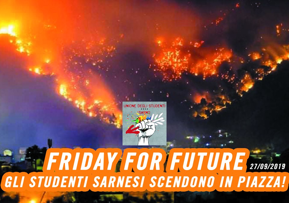E il 27 Settembre a Sarno in piazza 5 Maggio i giovani studenti Sarnesi (la UDS Sarno) hanno deciso di manifestare tutti insieme contro questo scempio : Venerdi quindi ci sarà il “FRIDAY FOR FUTURE” , la manifestazione che con il motto “Change the school to change the system “ vuole cambiare la scuola per cambiare il sistema,la mentalità.