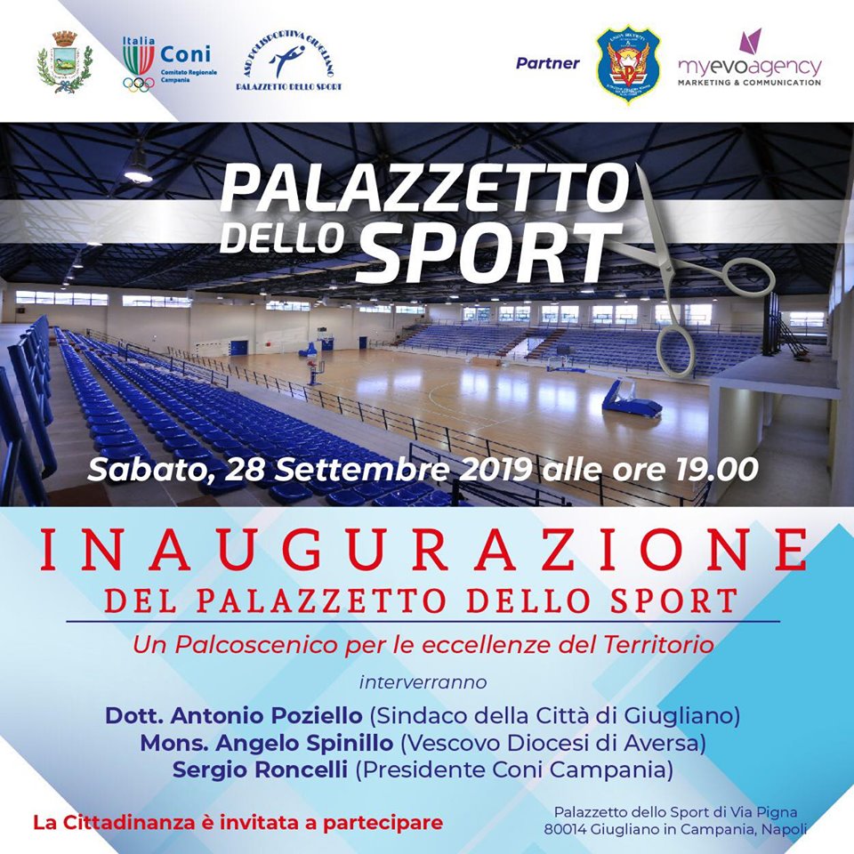 Taglio del nastro al Palazzetto dello Sport di Giugliano. Sabato 28 settembre alle ore 19 apre finalmente le porte alla città la struttura sportiva all’avanguardia del quartiere Casacelle. Per l’occasione, prevista una serata con le esibizioni di tante personalità che hanno già scelto il Palazzetto per insegnare i loro sport. Come la celebre famiglia Maddaloni, con papà Gianni e suo figlio Pino già Campione Olimpico che terranno lezioni di Judo e con i propri partner lezioni di tutte le arti marziali, al Palasport di Giugliano.