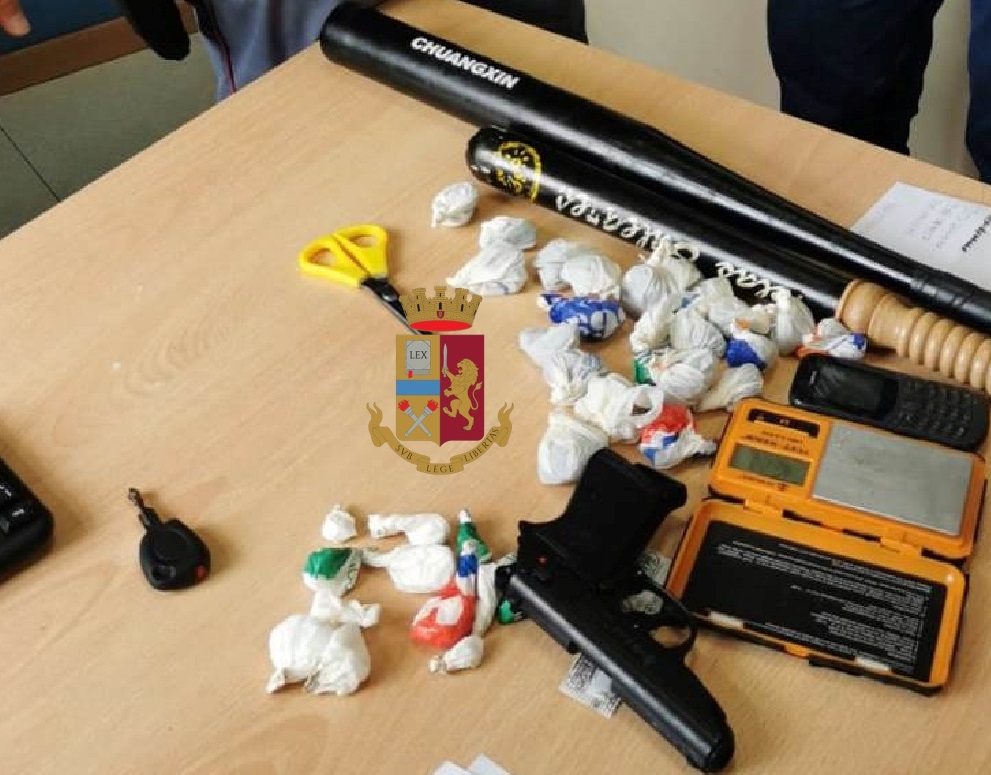 I poliziotti hanno sequestrato il materiale e la sostanza stupefacente ed hanno arrestato Francesco Mattera, di 35 anni, per porto di oggetti atti ad offendere e detenzione ai fini di spaccio di sostanze stupefacenti.