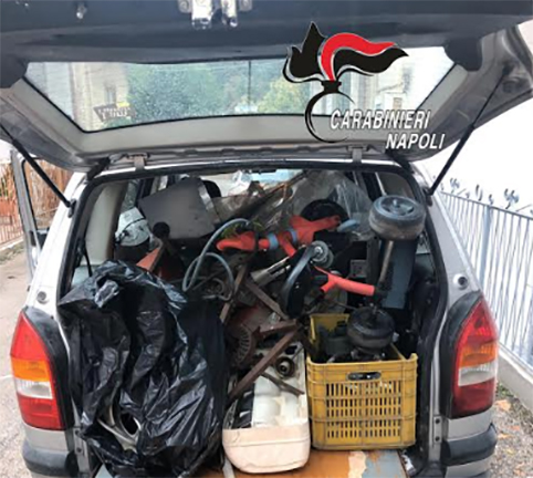 I Carabinieri della Stazione di Carbonara di Nola, durante un controllo alla circolazione stradale, hanno fermato un 54enne di Nola che trasportava a bordo dell’autovettura quintali di rifiuti pericolosi: cavi di rame, tubi in gomma, parti di elettrodomestici, pezzi di ricambio di auto. L’uomo, già noto alle forze dell’ordine, è stato denunciato per il reato di trasporto non autorizzato di rifiuti pericolosi. Autovettura e rifiuti sono stati sequestrati.