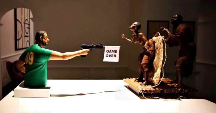 “Cosa non si fa per farsi un po’ di pubblicità, che squallore. La “scultura” che mi raffigura mentre sparo agli immigrati è una vera schifezza, è istigazione all’odio e alla violenza, altro che arte. Non vedo l’ora di tornare a Napoli per ammirare i fantastici Presepi tradizionali, non queste porcherie”. Lo dice il leader della Lega Matteo Salvini, commentando la notizia della scultura esposta a Napoli in cui è raffigurato mentre spara a degli immigrati.
