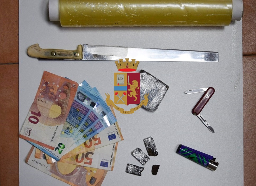 L’uomo è stato fermato e trovato in possesso di circa 8 grammi di hashish e 220 euro in contanti mentre, presso l’abitazione, sono stati rinvenuti altri 54 grammi circa di hashish, un rotolo di cellophane, un coltello da cucina ed un coltellino con lame annerite, materiali usati per il taglio ed il confezionamento in dosi della sostanza stupefacente. A.A., 48enne di Torre del Greco con precedenti di polizia, è stato arrestato per detenzione e spaccio di sostanze stupefacenti.