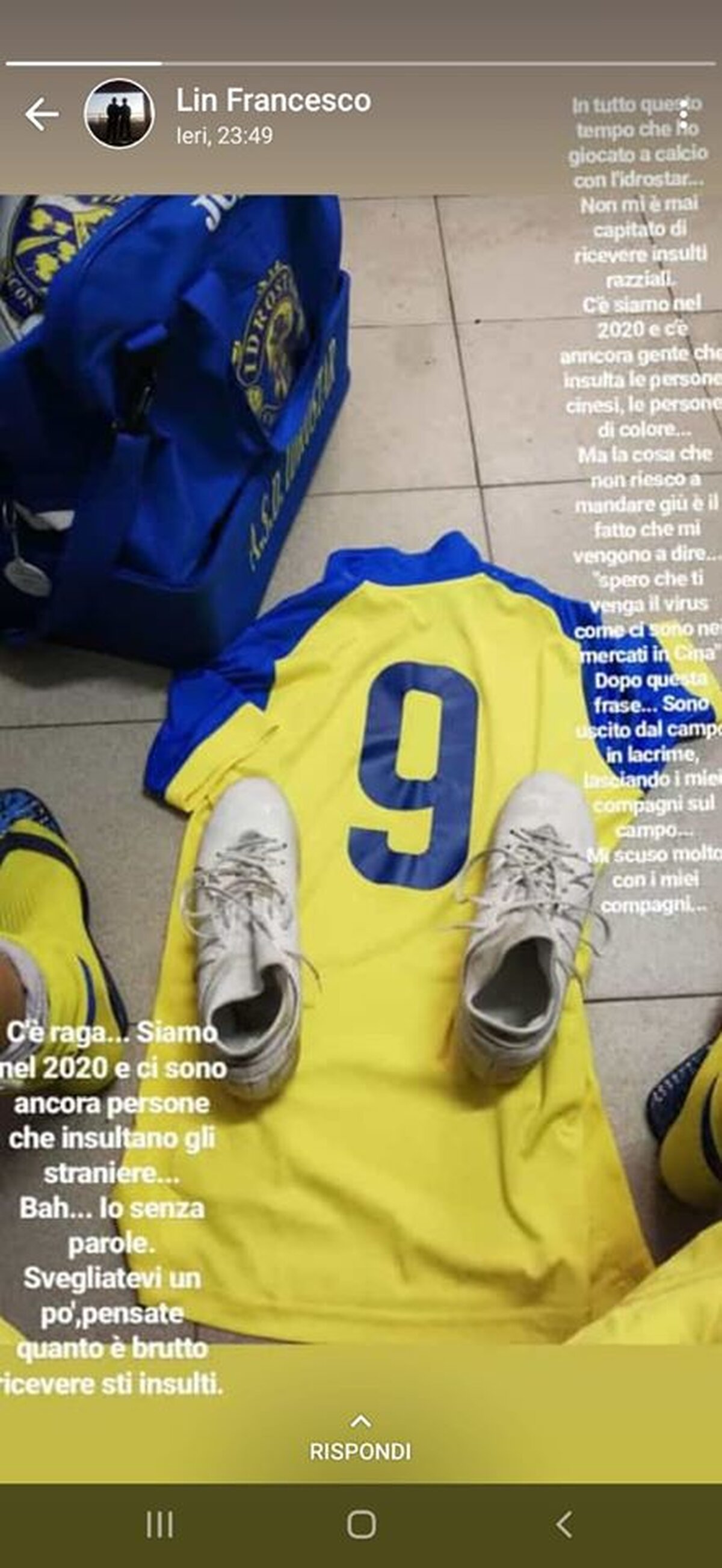 Noi come società non lasceremo stare, non faremo finta di niente. Vogliamo combattere, per Francesco Lin e per tutti gli altri che subiscono umiliazioni di questo genere, soltanto perché hanno un colore della pelle diverso.