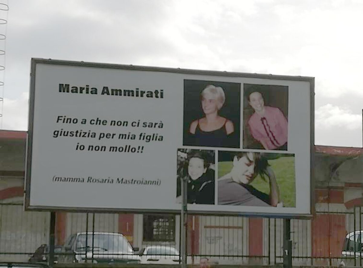 “Fino a che non sarà fatta giustizia io non mollo” e poi ancora “Chi ne ha causato la morte, paghi”. Sono le frasi di qualche decina di manifesti che Rosaria Mastroianni ha fatto affiggere in alcune strade tra Napoli e Caserta. La storia di Rosaria Ammirati e dei manifesti 6X3 nascono a seguito della morte della figlia, Maria Ammirati. Un calvario lungo otto anni tra i banchi delle aule di giustizia e non ancora concluso. Maria, 35 anni, di Marcianise, mori’ il 28 giugno 2012. Era incinta di 14 settimane, e il bambino che portava in grembo mori’ qualche ora prima del suo decesso. La giovane donna nei giorni che precedettero la morte era stata nell’ospedale di Caserta, in quello di Marcianise, poi dal suo ginecologo, e di nuovo all’ospedale di Caserta; una diagnosi sbagliata, un’infezione e poi il decesso. Inizialmente furono emessi 25 avvisi di garanzia. Il 25 luglio 2018, sei anni dopo la morte della donna e del suo bambino, il tribunale di Santa Maria Capua Vetere emette la sentenza di primo grado nei confronti del ginecologo della Ammirati e di 6 medici degli ospedali di Caserta e Marcianise: 4 condanne e tre assoluzioni, questo il verdetto. Vengono condannati per omicidio colposo il ginecologo di fiducia, Nicola Pagano, a 3 anni, e i medici Maria Golino, Anna Tamburro e Luigi Vitale a 4 anni. Assolti, invece, Andrea Fusco, Pasquale Parisi e Luigi De Falco. Secondo quella sentenza, la morte della donna e’ stata provocata da una patologia infettiva innescata da una amniocentesi che provoco’ aborto e decesso. Il 2 dicembre sarebbe dovuto iniziare il processo in Corte di Appello a Napoli. Ma l’udienza e’ slittata al 21 gennaio prossimo per un difetto di notifica per uno dei medici imputati. Otto anni in cui la mamma di Maria chiede giustizia per sua figlia e suo nipote. La donna aveva iniziato a fare affiggere manifesti poco dopo la morte della figlia e ha continuato fino a pochi giorni prima della sentenza di primo grado. Fondo bianco, scritte in nero a caratteri cubitali e una foto di Maria. Commovente l’ultimo manifesto a poche ore dalla sentenza: “Tra poco avremo giustizia amore mio”, accanto la solita foto di Maria allegra e spensierata. A distanza di un anno da quella sentenza, e con l’inizio del processo d’Appello, Rosaria Ammirati ha di nuovo ripreso la sua battaglia fatta attraverso anche i manifesti, questa volta non solo per avere giustizia, ma anche contro i tempi lunghi dei processi.