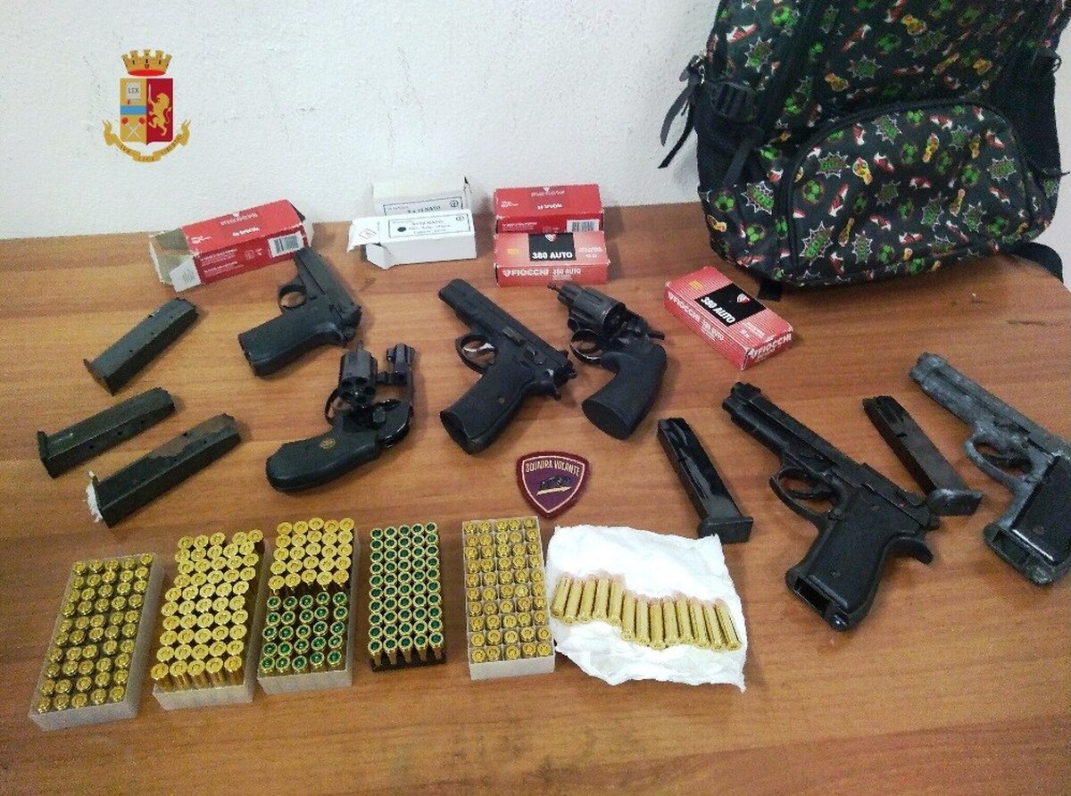 Napoli. Ieri pomeriggio gli agenti del commissariato San Giovanni – Barra, durante il servizio di controllo del territorio, hanno notato in via Raffaele Testa uno zaino abbandonato in un’aiuola in cui hanno rinvenuto 6 pistole, di cui una con matricola abrasa, 263 munizioni di diverso calibro e 5 caricatori vuoti.
