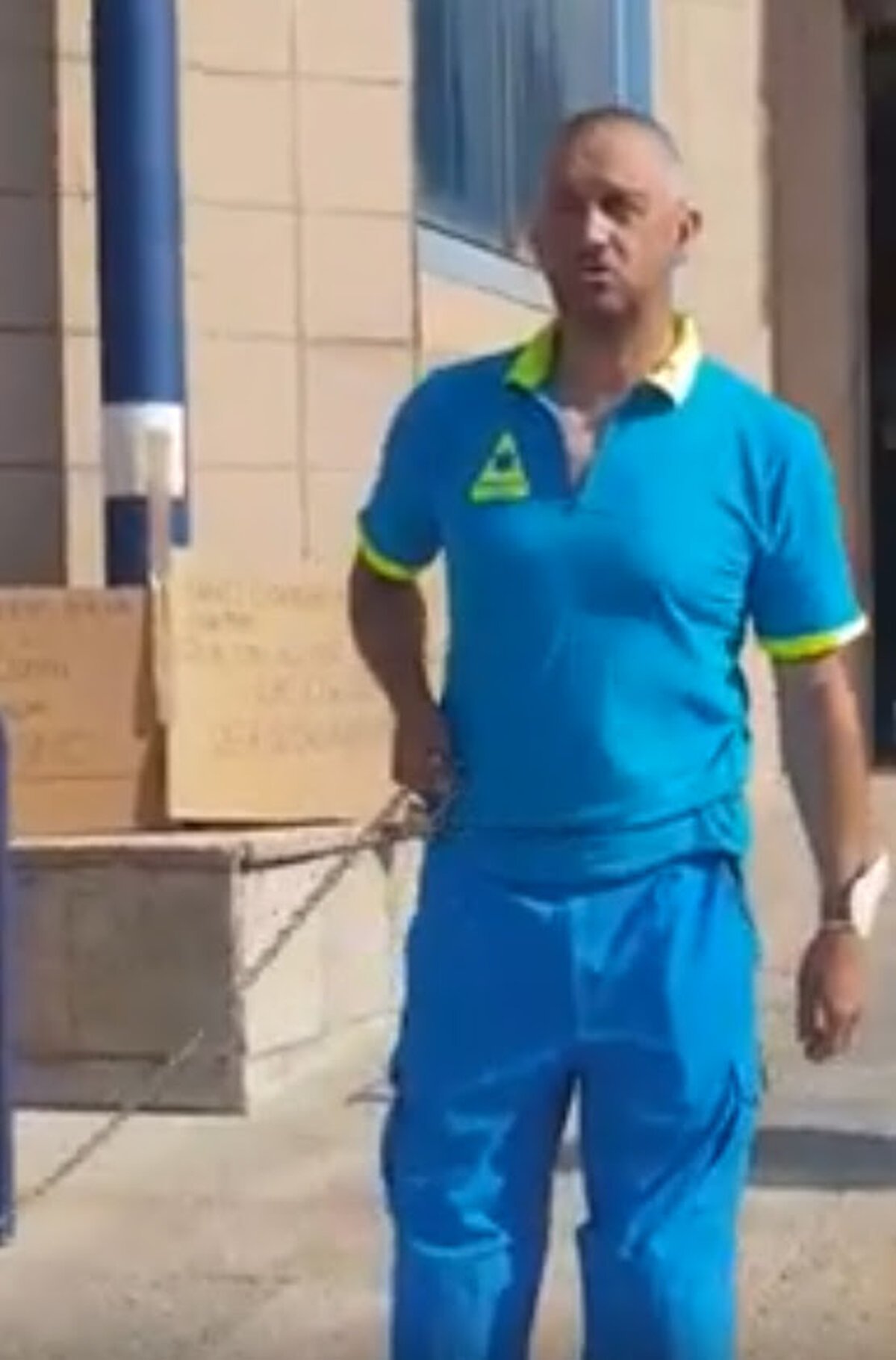 L’operatore durante la visita del leader della Lega Matteo Salvini a Mondragone aveva denunciato a quest’ultimo le pessime condizioni lavorative a cui era sottoposto. A seguito di queste delle dichiarazioni l’operatore è stato licenziato, ora ha dato vita ad una protesta pacifica legandosi ad un palo a Mondragone, nei pressi del dipartimento locale Asl.