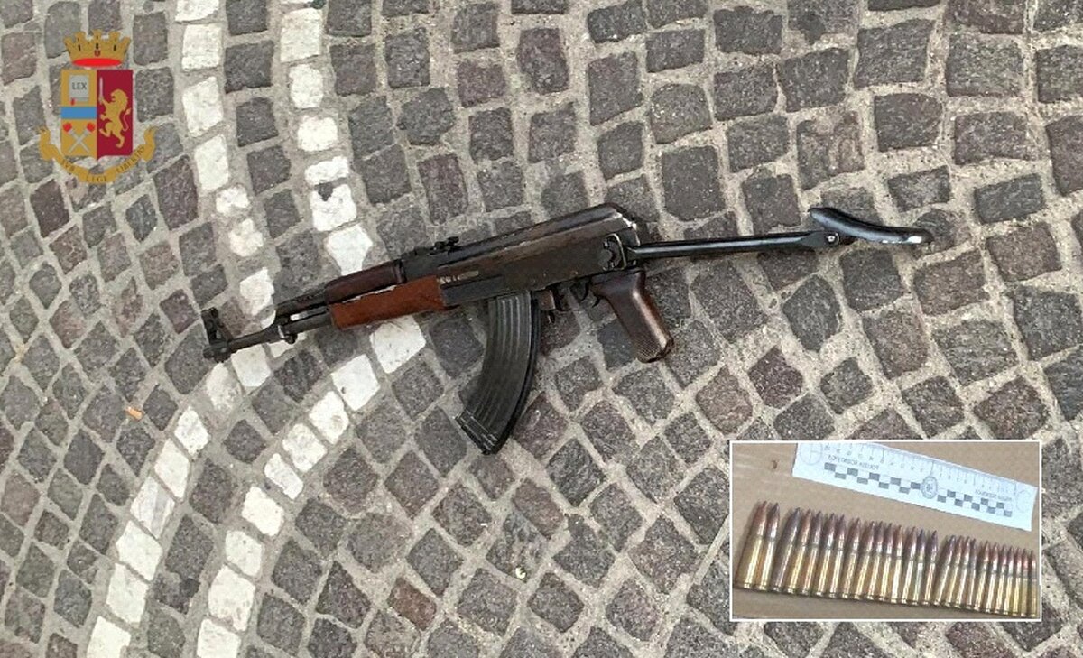 I poliziotti hanno recuperato un kalashnikov AK-47, con matricola abrasa, completo di caricatore contenente 26 cartucce cal. 7,62.