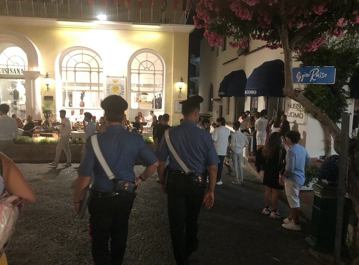 Controlli nella ‘Capri by night’ contro gli assembramenti per consentire a turisti entrare in Piazzetta.