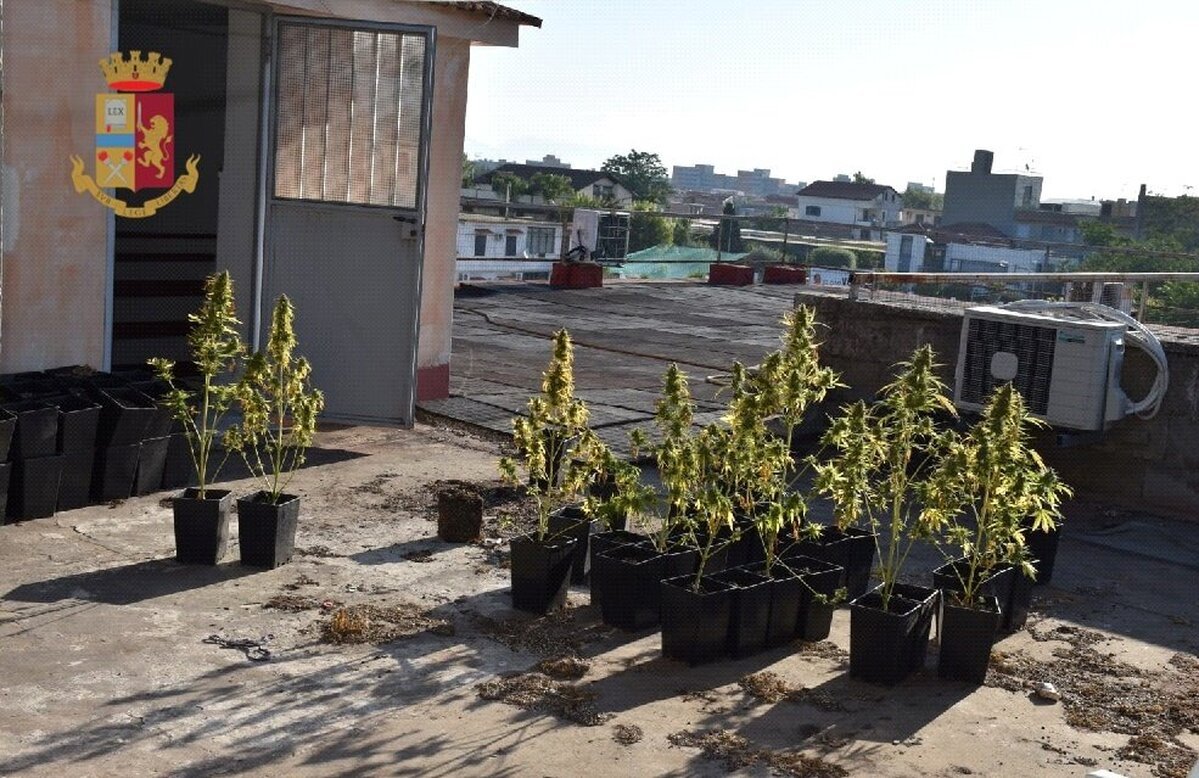 I poliziotti hanno trovato sul terrazzo dello stabile 11 vasi con piantine di marijuana alte circa 80cm mentre, nel garage, hanno rinvenuto 75 piante di marijuana appese a fili di plastica e poste all’essiccazione, 2 buste della stessa sostanza del peso complessivo di circa 700 grammi, 2 bilancini e diverso materiale per la coltivazione e per il confezionamento della droga.