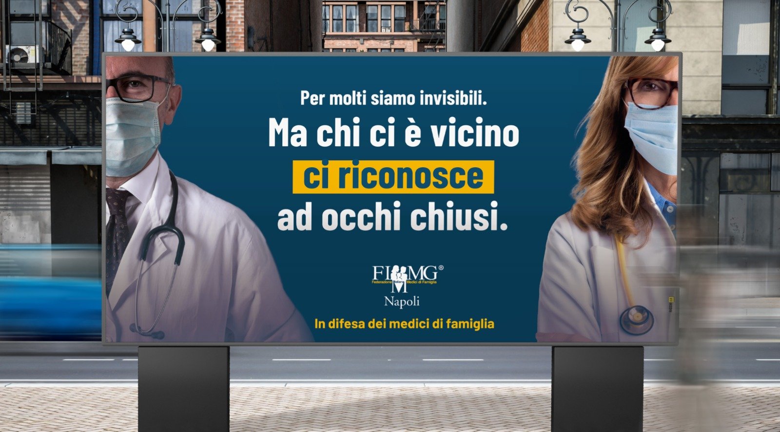 La FIMMG Napoli scende in campo in difesa dei medici di famiglia, e lo fa con una campagna di sensibilizzazione che partirà dalle strade e dagli studi degli stessi medici di famiglia. Dal 21 dicembre al 14 gennaio, manifesti 6 per 3 metri parleranno ai cittadini. Molto eloquenti gli slogan: «Per molti siamo invisibili, ma chi ci è vicino ci riconosce ad occhi chiusi», «Non mandarci all’inferno. Già ci siamo», «Abbiamo giurato di aiutare gli altri. Quando ci insultate, ricordatevelo», «Ogni giorno viviamo esperienze che nessuno conosce. Forse è per questo che si dimenticano di ciò che facciamo».