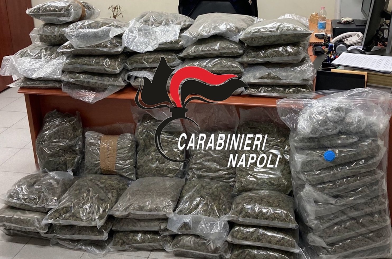 Colpo ai narcos di Giugliano e Caserta: sequestrati 58 chilogrammi di marijuana. Arrestati in due.