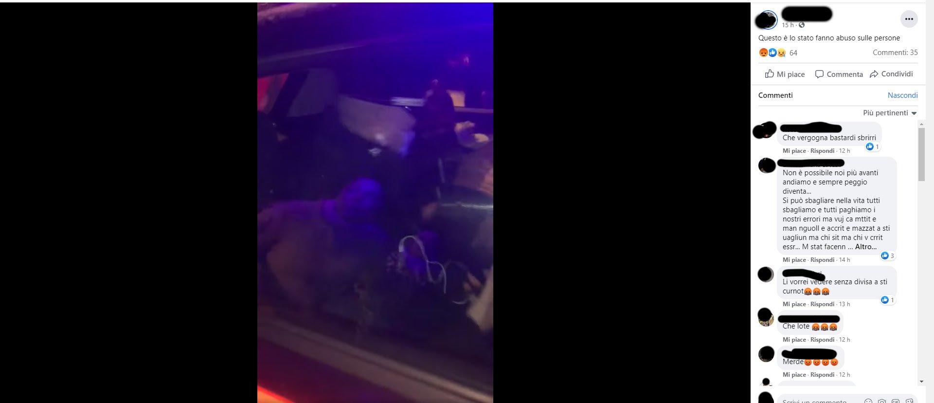 “Signor Borrelli. Spero di rimanere in anonimato. Perché’ ho tanta paura di quello che le sto inviando. Sono un padre di famiglia ho due figli. Non voglio avere ripercussioni da questa gentaglia. Se vi arriva da terzi questo filmato insinuando che i carabinieri siano stati ingiusti ed infami come lo stanno descrivendo…No!!! non è assolutamente vero. Io ero presente e ho visto tutto. Hanno simulato il tutto per dare torto ai carabinieri e hanno impedito a tutti i costi l’arresto. I carabinieri sono stati circondati da tutti loro…hanno rischiato davvero tanto. L’accaduto è successo nel Rione Salicelle ad Afragola. Chi parla e accusa i carabinieri sono donne con i loro figli che hanno un ‘curriculum’ coloritissimo. Adesso queste persone stanno diffondendo in massa tra di loro questo video sporcando la divisa dei carabinieri. Non lo trovo affatto giusto tutto questo. Qui in questo rione abbiamo tanta ma tanta paura. La brava gente subisce e sa quello che succede ma vogliamo lottare con voi per distruggere questa calamità.”.- raccolta un residente del Rione Salicelle che ha scritto al Consigliere Regionale di Europa Verde Francesco Emilio Borrelli