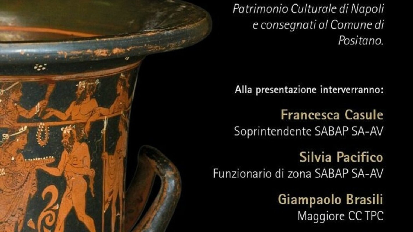I reperti ceramici consegnati al Comune di Positano, sequestrati nel luglio 2012 dal Nucleo Carabinieri Tutela Patrimonio Culturale di Napoli, sono provento di una complessa attività di indagine nei confronti di un sodalizio criminale dedito allo scavo clandestino ed alla ricettazione sul territorio nazionale ed estero di beni archeologici sottratti da importanti giacimenti di antichità della regione Campania. Si tratta di un cratere a campana e un piatto da pesce a figure rosse del IV secolo a.C. restituiti alla pubblica fruizione in una nuova e prestigiosa veste allestitiva, all’interno di uno spazio destinato dall’attuale Amministrazione a futuri eventi espositivi. Ricordo che proprio con l’Arma dei Carabinieri, non molto tempo fa abbiamo focalizzato l’attenzione proprio su tali tematiche con la realizzazione di un webinar”.