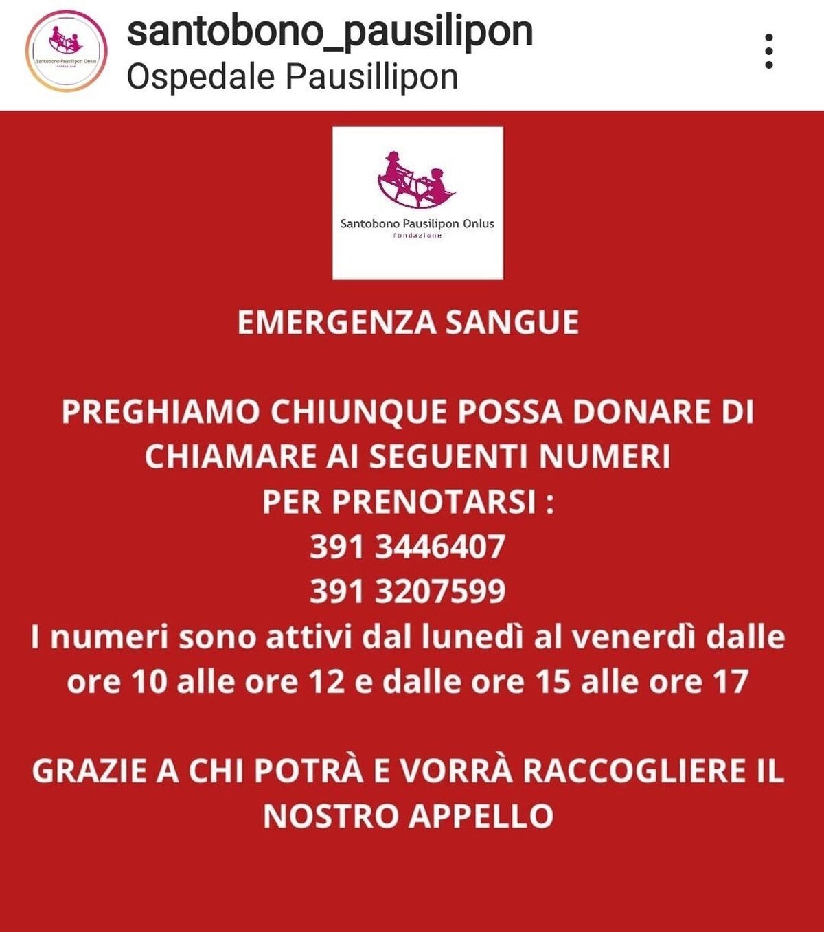 Campania. Sono ancor numerosi gli appelli lanciati dal personale medico, dalle direzioni degli ospedali e dalle varie associazioni per sensibilizzare la cittadinanza ad effettuare donazioni di sangue, soprattutto per poter aiutare pazienti che hanno bisogno di continue trasfusioni, come i talassemici, o i piccoli pazienti dell’ospedale pediatrico di Posillipo Santonobo-Pausilipon.