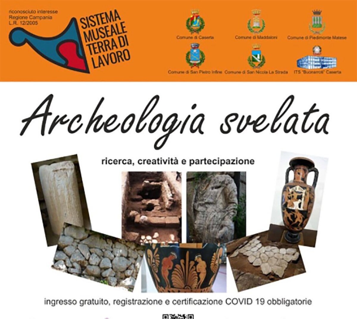 Giovedì 30 settembre, alle ore 19, sarà inaugurata la mostra documentaria “Archeologia svelata: ricerca, creatività e partecipazione”, iniziativa corale del Sistema Museale Terra di Lavoro, nelle sei sedi dei musei membri Museo Arte Contemporanea Caserta, Museo Civico Maddaloni, Museo Civico “Raffaele Marrocco” di Piedimonte Matese, Museo Civiltà Contadina San Nicola La Strada, Parco della Memoria Storica San Pietro Infine, Museo Michelangelo Caserta.