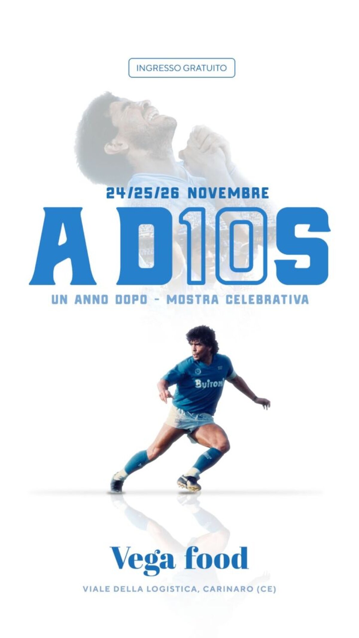 Carinaro. Inizia domani, mercoledì 24 novembre, a Carinaro, presso Vega Food, la mostra celebrativa, ad ingresso gratuito, “A D10S … un anno dopo”.