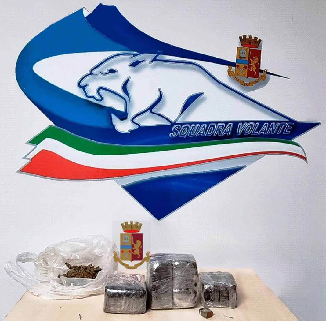 I poliziotti li hanno raggiunti e bloccati trovando gli spacciatori in possesso di una bustina di marijuana del peso di circa 40 grammi e di 32 euro mentre, nell’abitazione di uno dei tre, hanno rinvenuto 19 panetti di hashish del peso di circa 1,9 kg.